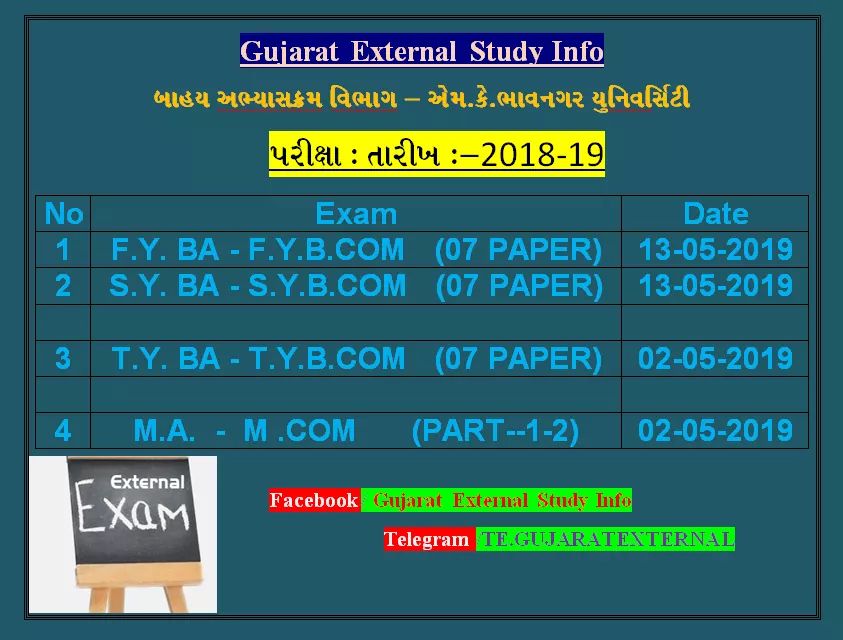 M.K.Bhavnagar University External Department Exam Date: 2018-19