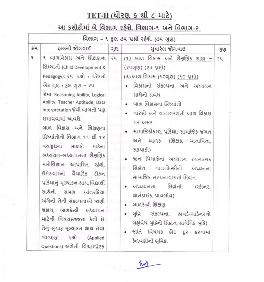 As of early 2026, the syllabus remains aligned with previous patterns (based on NCERT/Gujarat State Board curriculum), focusing on child pedagogy, languages, and subject-specific knowledge. The exam is objective (MCQs), carries 150 marks, lasts 150 minutes (2.00 hours), and has no negative marking.